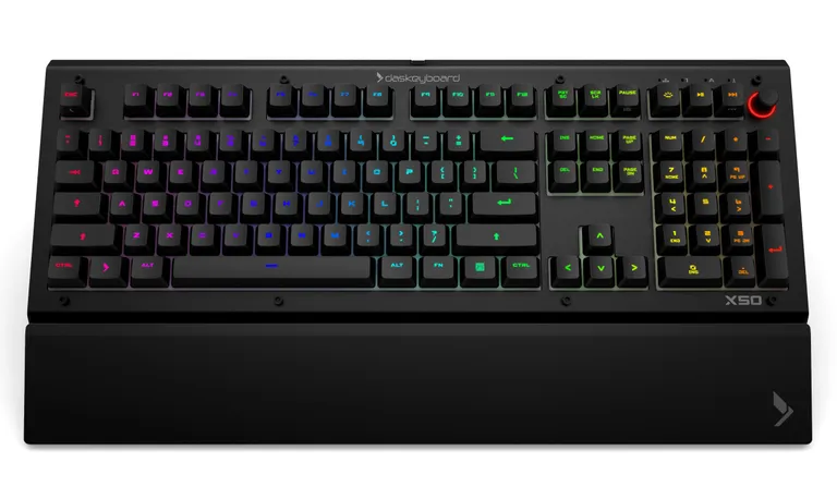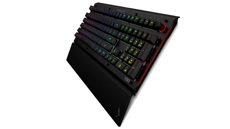 Then when you throw in a tidy gaming mode indicator and ability to disable windows keys, an extra long braided 2-metre cable, a soft touch coated palm rest, and a built-in control knob, too, it’s easy to see how the X50 RGB Mechanical Gaming Keyboard is our top recommendation.